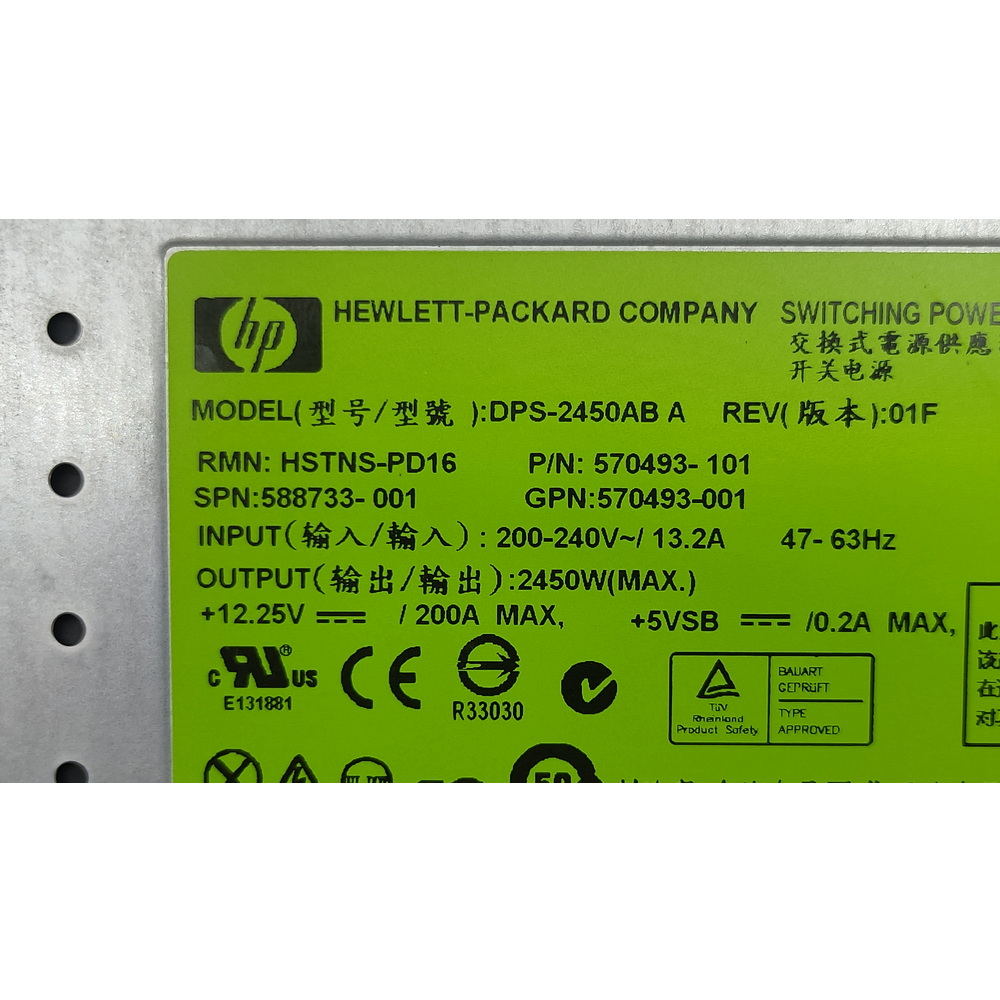 Артикул 570493-001, 570493-101, 588733-001, DPS-2450AB A REV:01F, HSTNS-PD16Бренд: HP