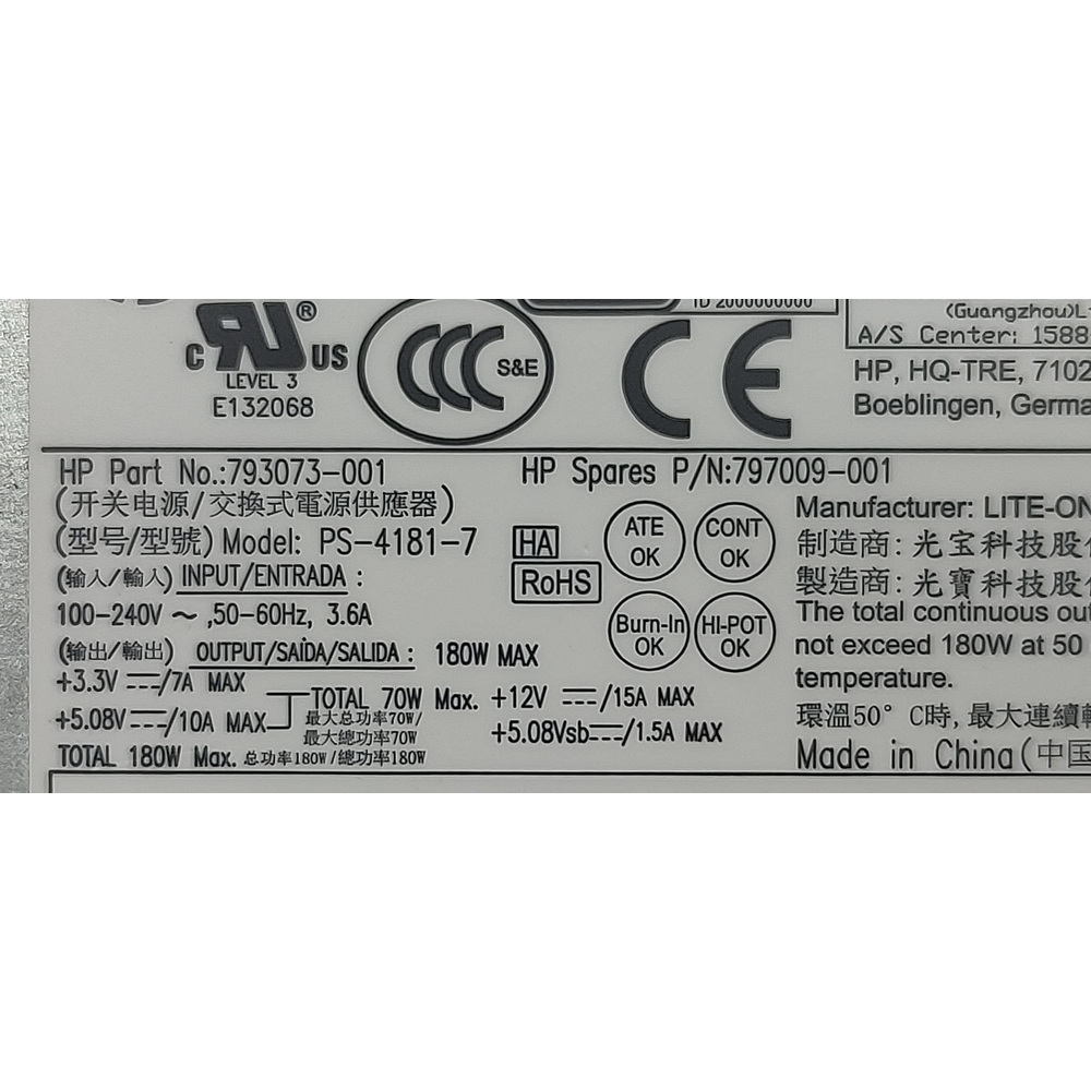 Блок питания PS-4181-7, 797009-001, 848050-001, 793073-001, Lite-On, HP ProDesk 400 G2, 400 G3, SFF, 180W